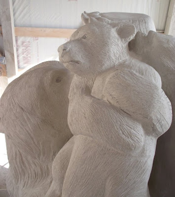 This is the left side of the bears. I have recarved the mother's shoulder and have reworked the mother's fur texture on this side, but I will go back and add more depth with deeper carving. The fur needs several passes to get the look that I'm after.
